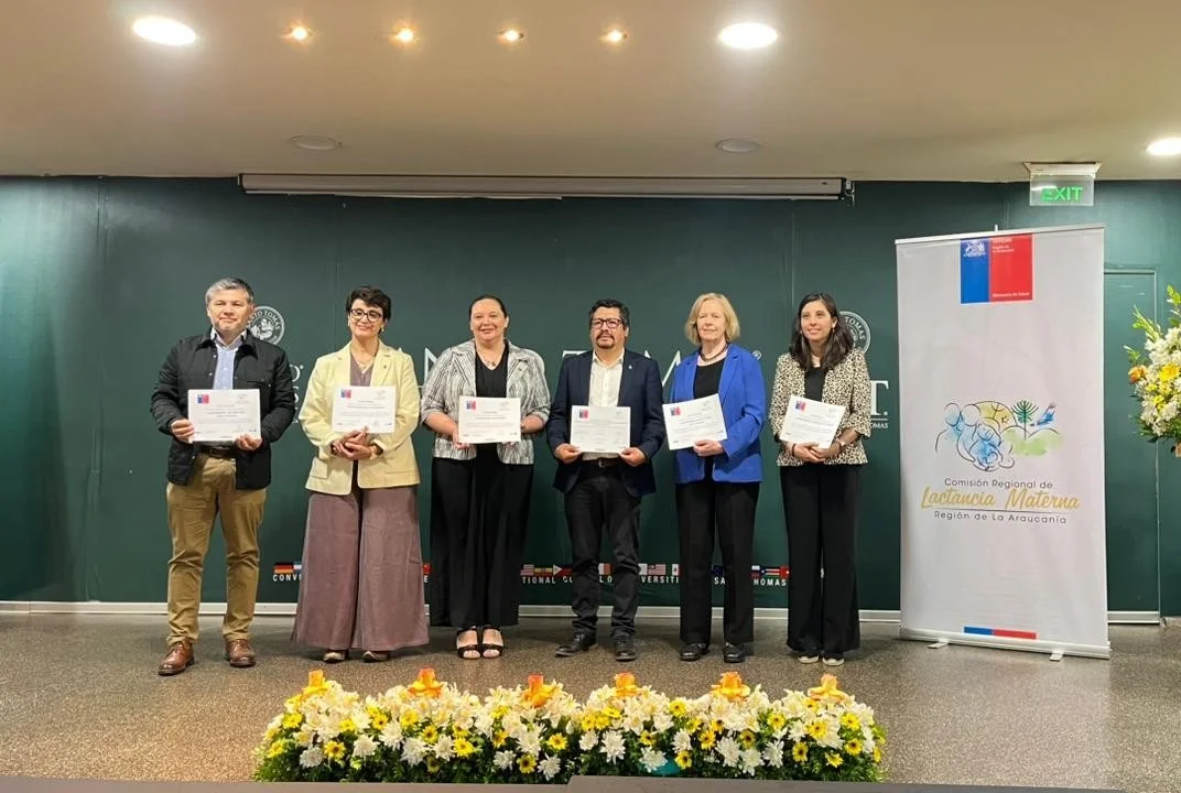 El acto, que se realizó en la universidad Santo Tomás fue liderado por el seremi de Salud, Andrés Cuyul, junto a autoridades universitarias de diversas casas de estudios, entre ellas, la directora de Pregrado de la Facultad de Medicina, Dra. Sara Barrios. Igualmente estuvo la representante de la Mesa Regional de Lactancia Materna y nutricionista de la seremi de Salud, Paula Valdés.