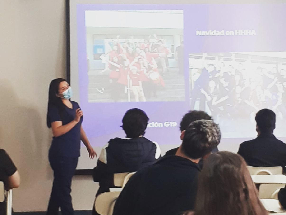 Durante la bienvenida también se contó con la participación de la egresada Srta. Génesis Nahuelhual, quién contó a los participantes su experiencia como estudiante de la carrera y luego en la vida laboral.