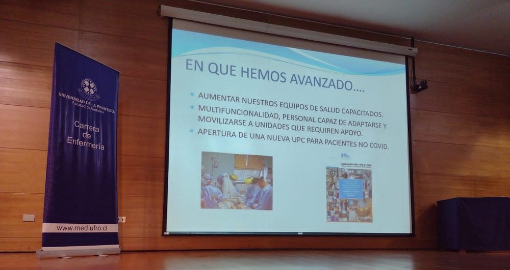 En la ocasión se presentó la conferencia “Pandemia SARSCOV2: Desafíos y oportunidades para el rol de la enfermería en el liderazgo de la crisis sanitaria” a cargo de la enfermera Srta. Camila Martínez Elgueta, ex alumna de la carrera y enfermera Unidad Epidemiología de la Seremi Salud Araucanía Sur , además del tema “Que aprendizajes nos deja la Pandemia para el desarrollo del rol Enfermero” a cargo de la Enfermera Jefe Centro Responsabilidad Paciente Critico HHHA, Sra. Rosana Sepúlveda Ancamil.