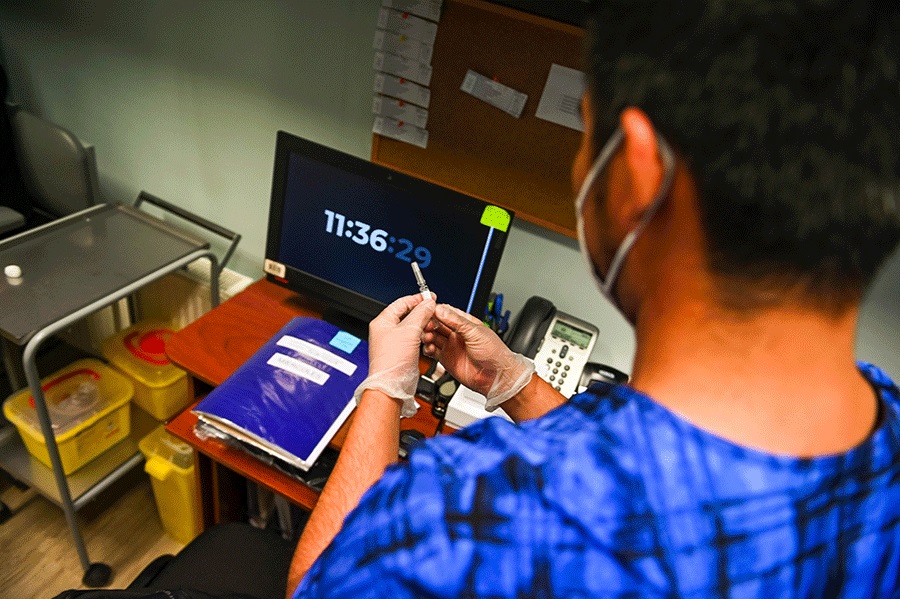 El investigador cuenta que el procedimiento se inicia con la inscripción de los/as voluntarios/as y la aplicación de los criterios de elegibilidad, para determinar si cumple con los requisitos de participación, como ser mayor de edad y estar en buenas condiciones de salud, entre otros. Una vez incluido en el estudio, el/la participante es informado/a sobre el procedimiento y citado/a para la inoculación, que se realiza previa firma del consentimiento.