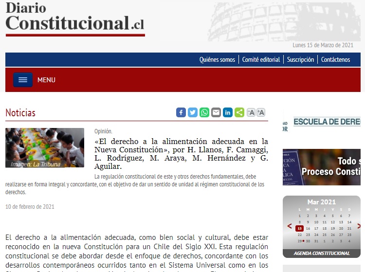 El derecho a la alimentación adecuada en la Nueva Constitución», por H. Llanos, F. Camaggi, L. Rodríguez, M. Araya, M. Hernández y G. Aguilar.