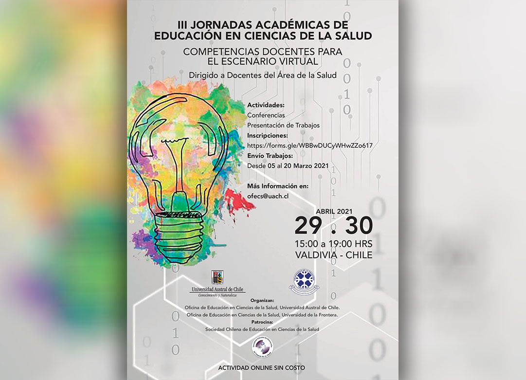 Vía online se realizarán las Terceras Jornadas Académicas de Educación en Ciencias de la Salud, durante los días 29 y 30 de abril del presente año, desde la capital de la región de los Ríos, Valdivia.