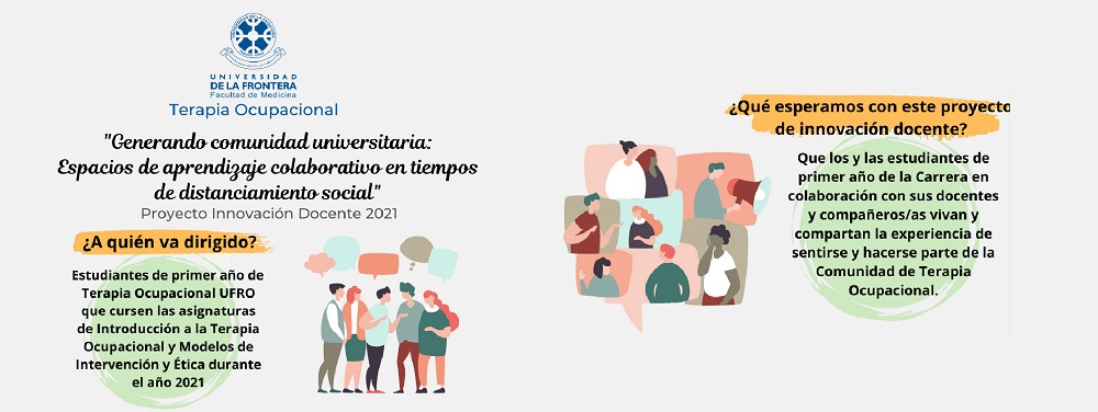 Este proyecto tiene por objetivo que los y las estudiantes de primer año de la carrera en colaboración con sus docentes y compañeros/as vivan y compartan la experiencia de sentirse y hacerse parte de la comunidad de Terapia Ocupacional UFRO.