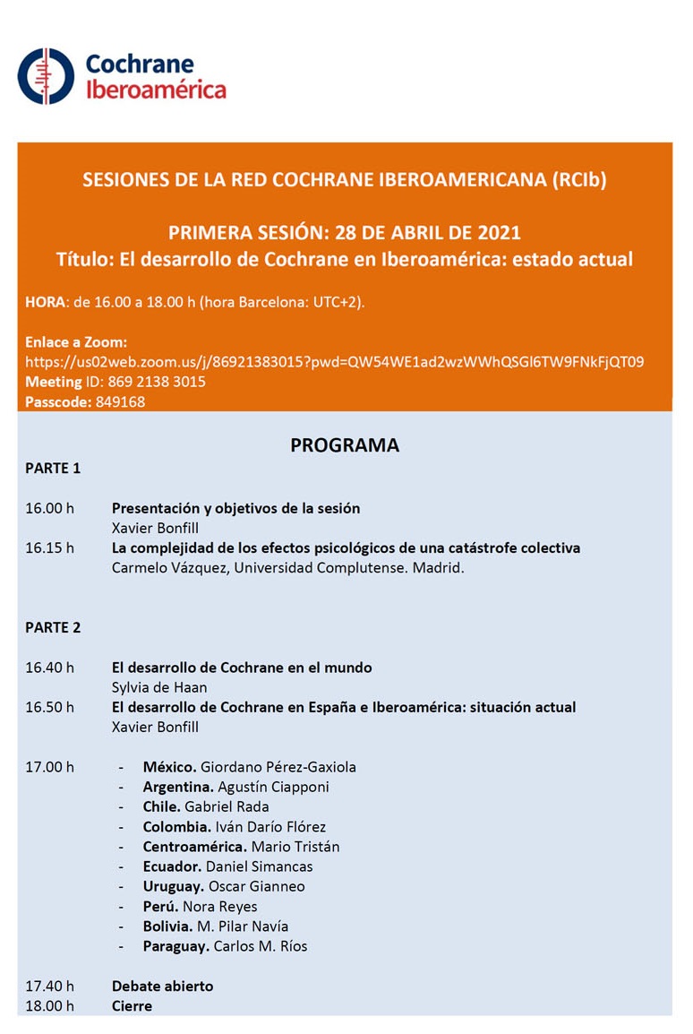 Sesiones de la Red Cochrane Iberoamericana 2021