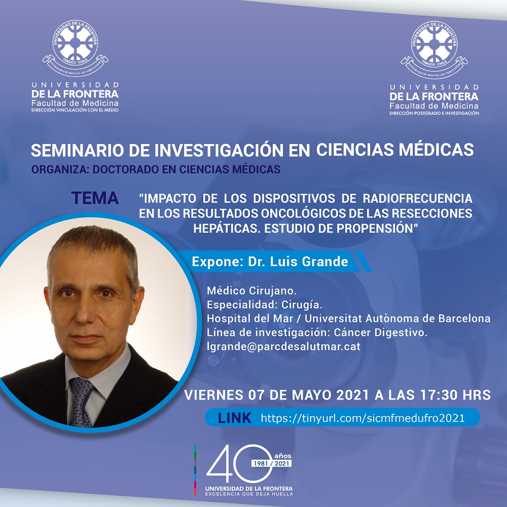 Seminario de Investigación en Ciencias Médicas - 07 May Escrito en 04 May 2021. https://tinyurl.com/sicfmedufro2021 Visto: 4477