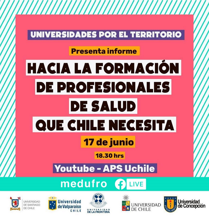Este colectivo está integrado por las universidades de La Frontera, de Chile, de Santiago, de Concepción y de Valparaíso, quienes invitan al lanzamiento y reflexión del documento "Hacia la formación de profesionales de la salud que Chile necesita. Dilemas y desafíos en las enseñanzas y aprendizajes de las ciencias de la salud” que se realizará el jueves 17 de junio a las 18:30 horas, a través de los canales de youtube de la Facultad de Medicina de Universidad de La Frontera y de la Universidad de Chile.