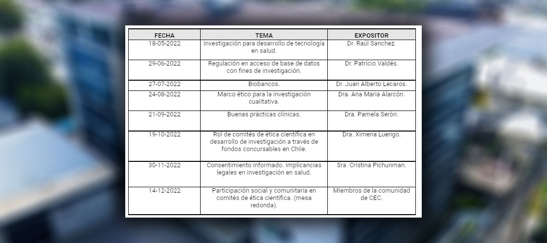 Este miércoles 18 de mayo a las 11 horas se realizará la primera actividad programada para el presente año del Curso de Capacitación en Ética de la Investigación, de la Unidad de Bioética del Servicio de Salud Araucanía Sur y su Comité de Ética Científica.