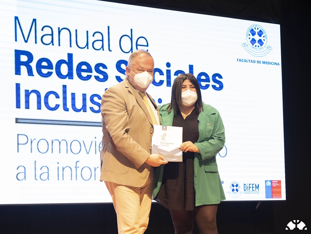 La representante del estamento estudiantil del Comité de Inclusión de la carrera, Camila Toledo entregó el Manual al Rector UFRO, Dr. Eduardo Hebel quien aseveró que “es un esfuerzo institucional que no me deja indiferente y hace que nuestro trabajo trascienda las aulas y sea reconocido. La manera de comunicarnos cambió y estamos permanentemente expuestos en las redes. La inclusión es uno de los pilares de nuestro programa de gobierno 2022 – 2026”.