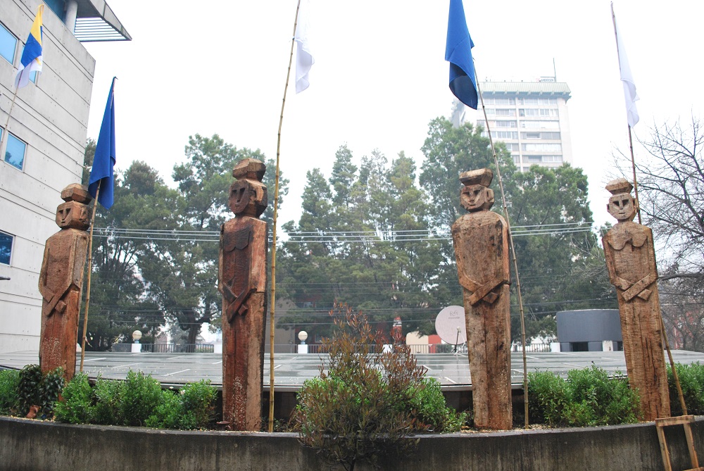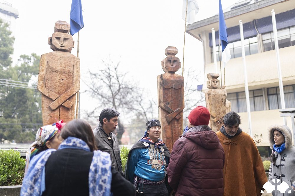 Desde las nueve de la mañana comenzó la ceremonia donde se instalaron en el corazón de la Facultad de Medicina, los che mamüll que son figuras sagradas de madera que vigilan el sueño de los que han partido recordando a los vivos que los abuelos y abuelas están siempre cuidando de sus hijas e hijos desde el Wenumapu.