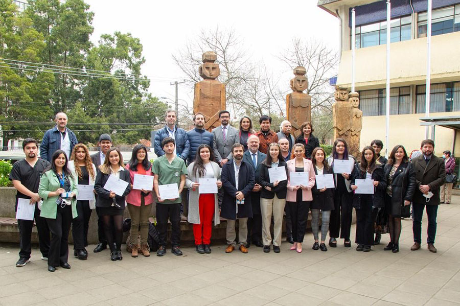 La ceremonia contó con la participación de las y los estudiantes beneficiados, el equipo de profesionales de la Dirección de Desarrollo Estudiantil (DDE), autoridades académicas UFRO, representantes del Colegio Médico y donatarios del Servicio de Cirugía y Traumatología del Hospital Regional de Temuco.
