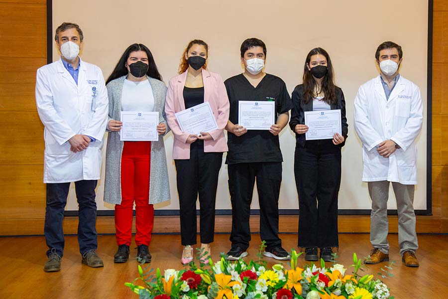 Por su parte, la Beca de Cirugía fue entregada a cuatro estudiantes: Camila Díaz Hermosilla y Camila Henríquez Rivera, ambas de tercer año. John Muñoz Ramírez, de sexto año y Karen Sotomayor Medel, de quinto año.