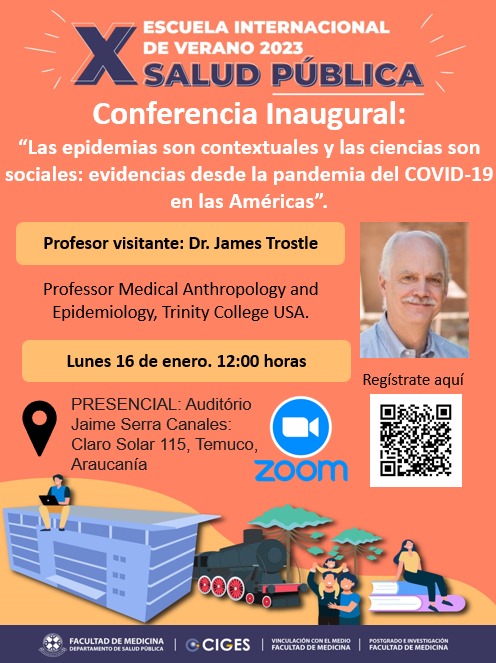 Estamos a seis días del comienzo de la X Escuela Internacional de Verano de Salud Pública y ¡No lo olviden! Este lunes 16 de enero a las 12 horas, la conferencia inaugural con el Dr. James Trostle y la clase "Las epidemias son contextuales y las ciencias son sociales: evidencias desde la pandemia del COVID 19 en las Américas". Presencial y vía zoom.