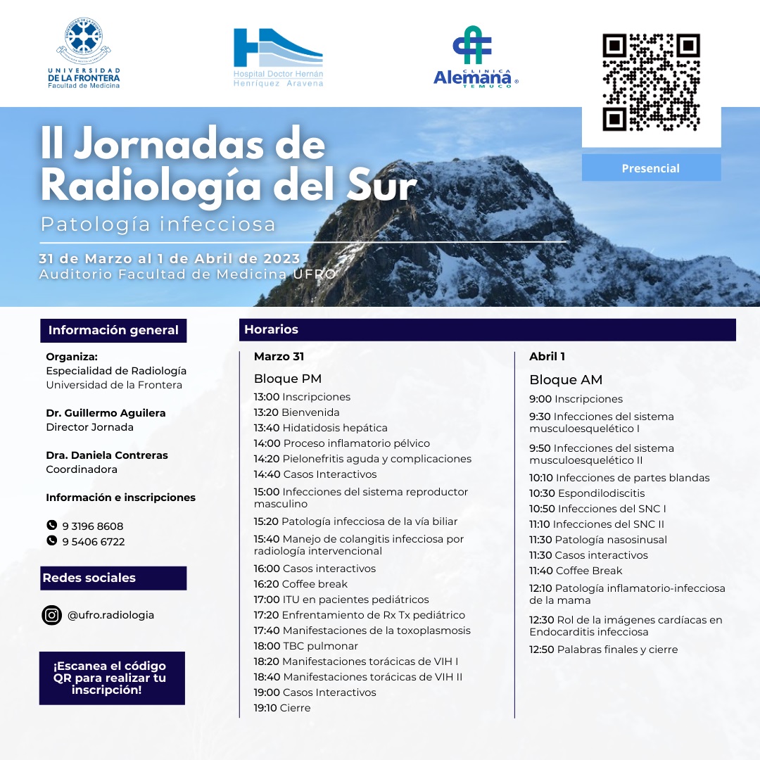 El evento es organizado por la especialidad de Radiología de la Facultad de Medicina UFRO, la Clínica Alemana de Temuco y el Hospital Dr. Hernán Henríquez Aravena de Temuco.