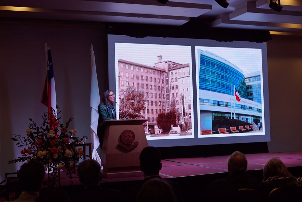 La charla inaugural de la Jornada, la brindó la doctora Paula Daza, ex subsecretaria de Salud Pública, quien realizó un recuento de la pandemia y cómo se enfrentó desde el punto de vista público. Al respecto, señaló que “la capacitación y la formación continua es un elemento fundamental en salud y en ese sentido no hay como las actividades académicas presenciales. La pandemia dejó de lado a muchos pacientes y hoy tenemos mucha lista de espera en diversas áreas. El sector público, el sector privado y el mundo académico deben dialogar y hacer propuestas concretas para atender las necesidades. Hoy el cáncer es la primera causa de muerte en el país y tenemos 14 mil personas GES de cáncer en listas de espera y debemos trabajar juntos para resolver esos problemas”.
