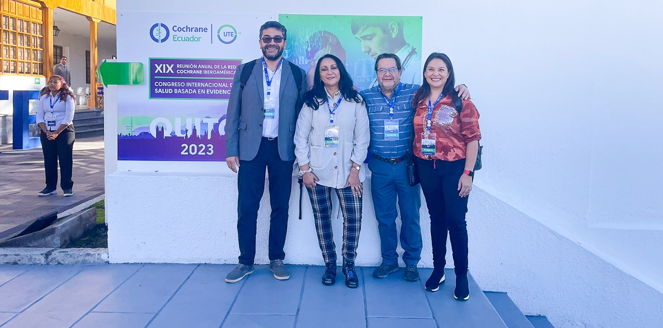 Académicos de La Facultad de Medicina y del Centro de Excelencia CIGES participan de la XIX reunión anual de la Red Cochrane Iberoamericana y del Congreso de Salud Basada en Evidencia que se realizan desde el 7 al 9 de junio en Quito, Ecuador. En el evento están dictando talleres e integrando de mesas redondas. En la foto, Juan José Orellana, @pseron01 Sergio Muñoz y Rocío Fuentes.