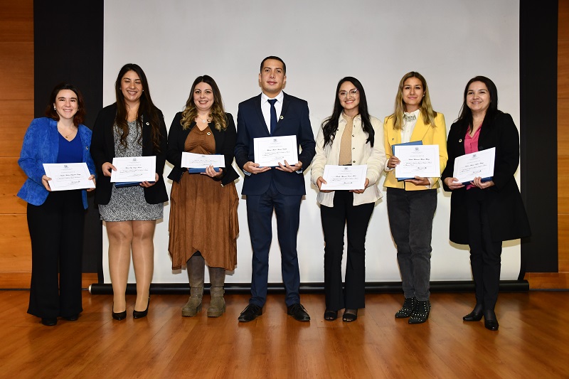 Durante la ceremonia se entregaron diplomas y reconocimientos a los titulados: Martín Javier Sandoval Epul y Natalia Andrea Riquelme Ortega de la especialidad en Enfermería Familiar Comunitaria; María Paz Ortega Fuentes de la especialidad en Gestión del Cuidado en Pabellón y Postoperatorio Inmediato; Marcelo Andrés Acevedo Ceballos, Daniela Andrea Bustos Herrera, Guisella Alejandra Correa Ancal, Patricia Andrea Emaldía Mella, Natalia Monserrat Morán Muñoz y Karina Andrea Vielma Chávez de la especialidad en Gestión del Cuidado en Personas con Alteraciones Renales.